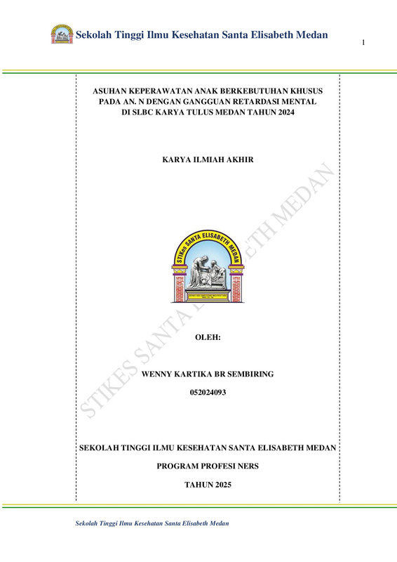 Asuhan Keperawatan Pada An. N Dengan Gangguan Retradasi Mental Di SLB Karya Tulus
