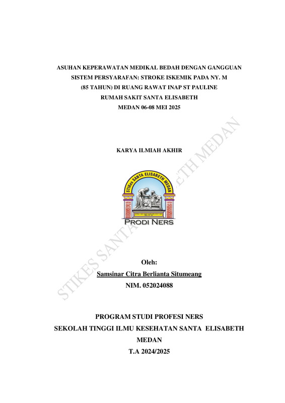 Asuhan Keperawatan Medikal Bedah Dengan Gangguan Sistem Persyarafan: Stroke Iskemik Pada Ny. M (85 Tahun) Di Ruang Rawat Inap St Pauline Rumah Sakit Santa Elisabeth Medan 06-08 Mei 2025
