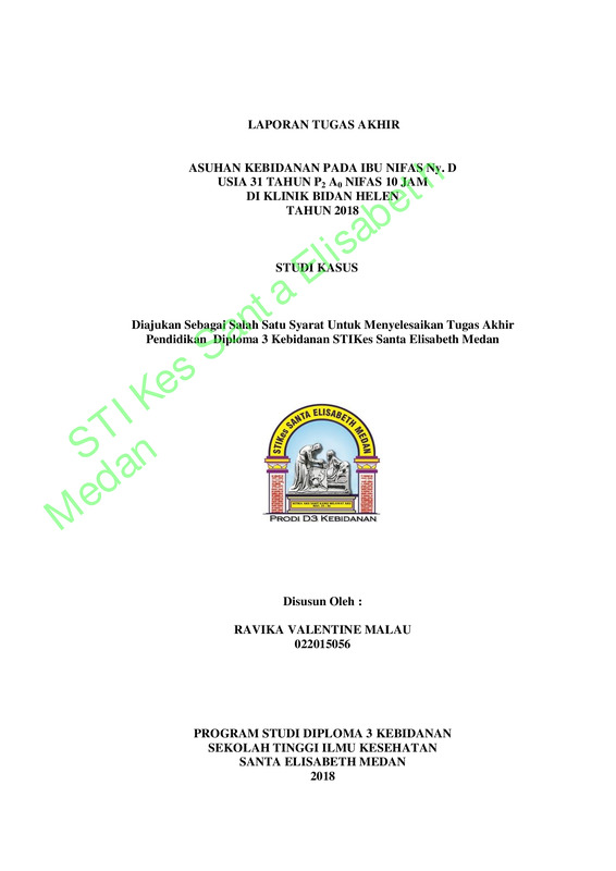 Asuhan Kebidanan Pada Ibu Nifas Ny.D Usia 31 Tahun P2A0 Nifas 10 Jam Di Bidan Helen Tahun 2018