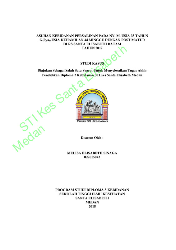 Asuhan Kebidanan Persalinan Pada Ny. M. Usia 33 Tahun G4P3A0 Usia Kehamilan 44 Minggu Dengan Post Matur Di RS Santa Elisabeth Batam Tahun 2017