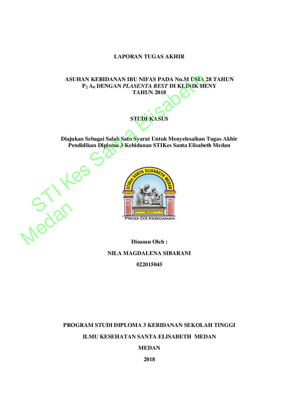 Asuhan Kebidanan Ibu Nifas Pada Ny.M Usia 28 Tahun P2, A0Dengan Plasenta Rest Di Klinik Heny Kasih Tahun 2018