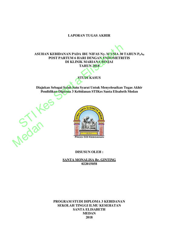 Asuhan kebidanan pada Ny. M usia 30 tahun P4A0 postpartum 6 hari dengan endometritis di klinik Mariana Binjai Tahun 2018