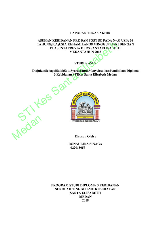 Asuhan Kebidanan Pre Dan Post SC Pada Ny. G Usia 36 Tahun G5P4A0 Usia Kehamilan 38 Minggu 4 Hari Dengan Plasenta Previa Di RS Santa Elisabeth Medan Tahun 2018