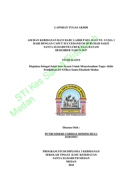 Asuhan Kebidanan bayi baru lahir pada By. Ny. S usia 1 hari dengan Caput Succedaneum di Rumah Sakit Elisabeth Batam Tahun 2017