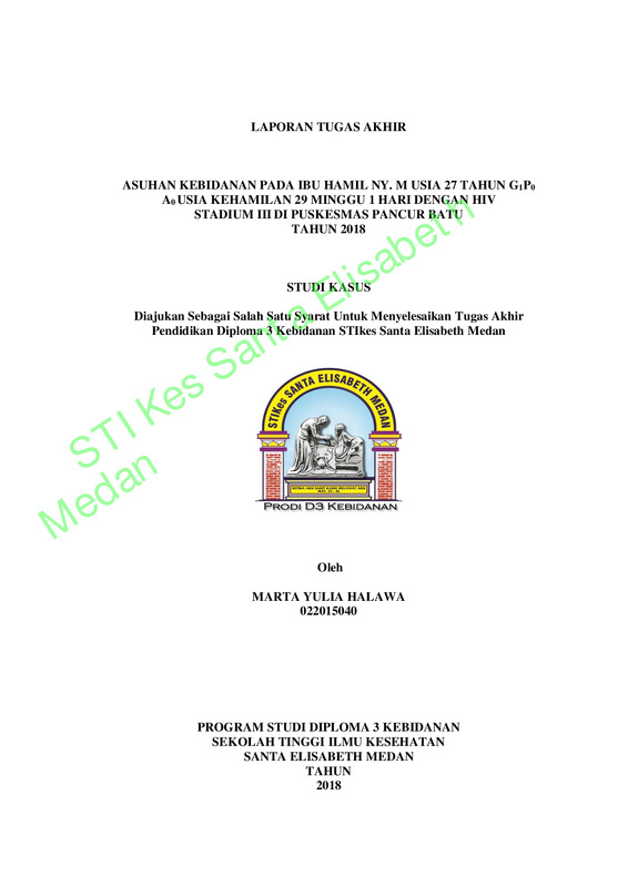 Asuhan Kebidanan Pada Ibu Hamil Ny. M Usia 27 Tahun G1p0 A0 Usia Kehamilan 29 Minggu 1 Hari Dengan HIV Stadium III Di Puskesmas Pancur Batu Tahun 2018