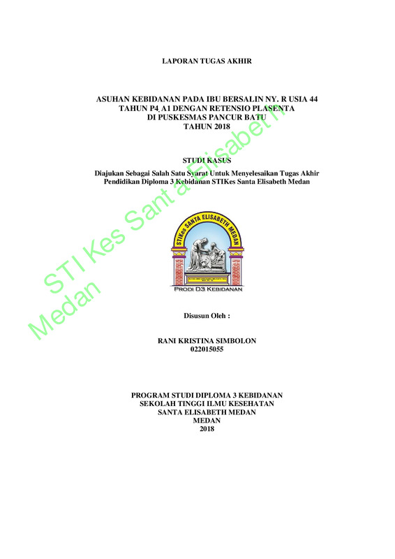 Asuhan Kebidanan Pada Ibu Bersalin Ny. R Umur 44 Tahun P4, A1 Dengan Retensio Plasenta Di Puskesmas Pancur Batu Tahun 2018