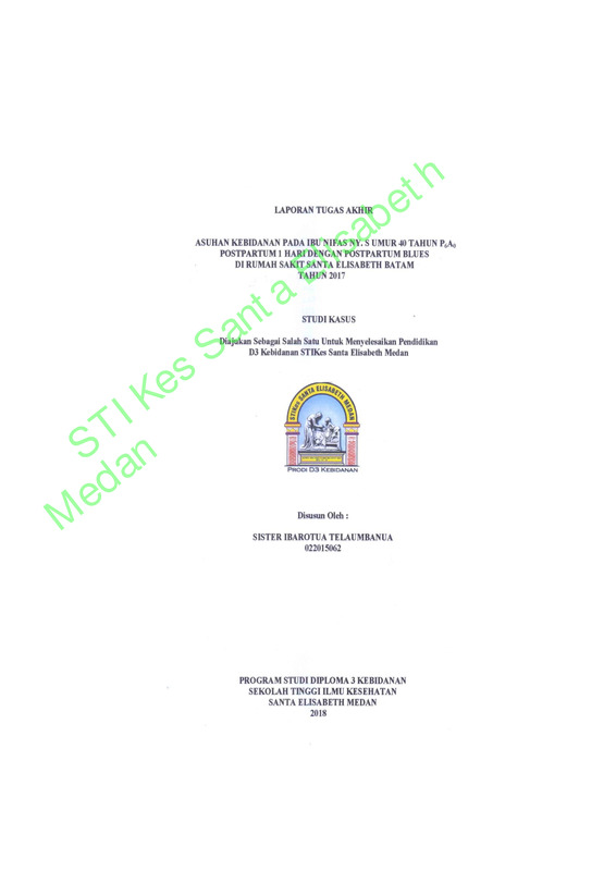 Asuhan Kebidanan Pada Ibu Nifas Ny. S Usia 40 Tahun P6A0 Postparfum 1 Hari Dengan Postparfum Blues Di Rumah Sakit Santa Elisabeth Batam Tahun 2017