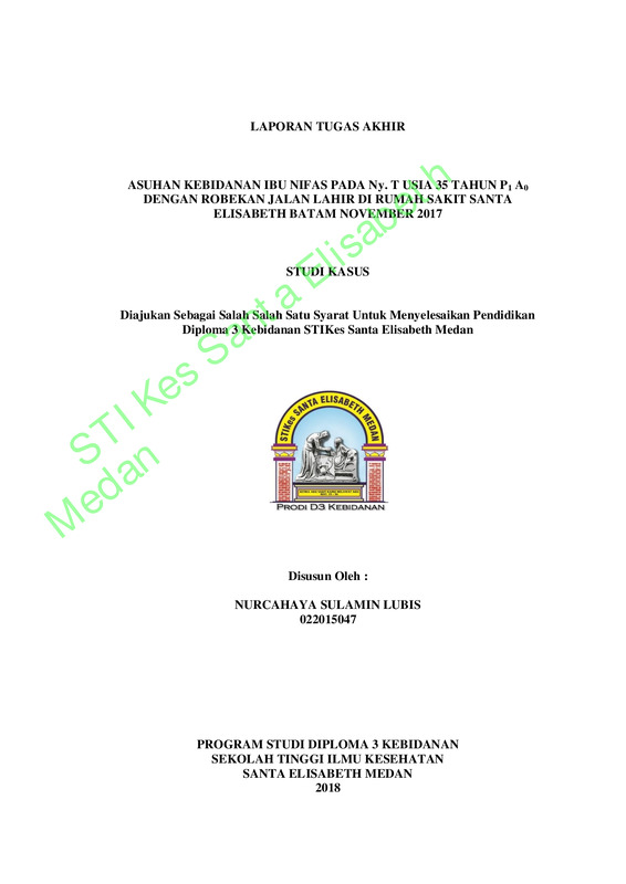 Asuhan Kebidanan Ibu Nifas Pada Ny. T Usia 35 Tahun P1 A0 Dengan Robekan Jalan Lahir Di Rumah Sakit Santa Elisabeth Batam November Tahun 2017