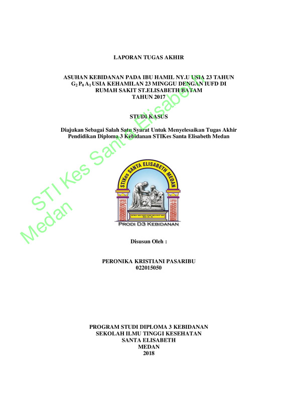 Asuhan Kebidanan Pada Ibu Hamil Ny.U Usia 23 Tahun, G2 P0 A1 usia Kehamilan 23 Minggu Dengan IUFD di Rumah Sakit Santa Elisabeth Batam Tahun 2017