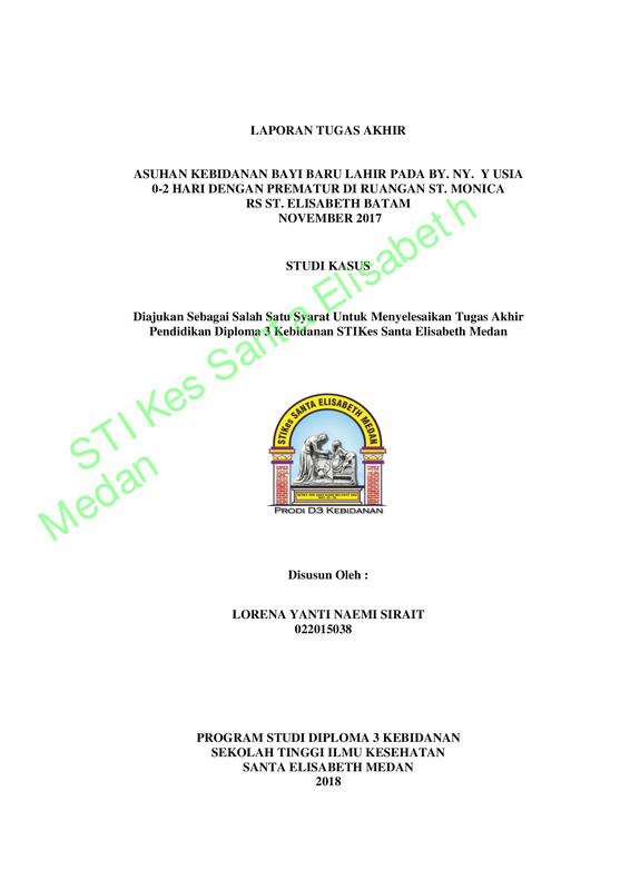 Asuhan Kebidanan Bayi Baru Lahir Pada By. Ny. Y Usia 0-2 Hari Dengan Prematur di Ruangan St. Monica RS St. Elisabeth Batam November 2017