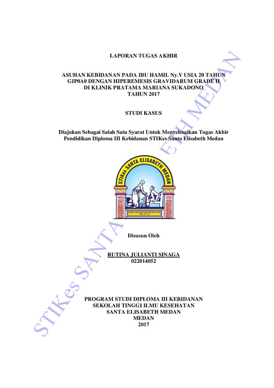 Asuhan Kebidanan Pada Ny. V Usia 20 Tahun, GIP0A0 Dengan Hiperemesis Gravidarum Grade II di Klinik Pratama Mariana Sukadono Tahun 2017