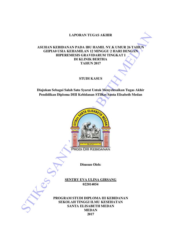 Asuhan Kebidanan pada ibu hamil Ny. K umur 26 tahun GIIPIA0 usia kehamilan 12 minggu 2 hari dengan Hiperemesis Gravidarum tingkat I di Klinik Bertha Tahun 2017