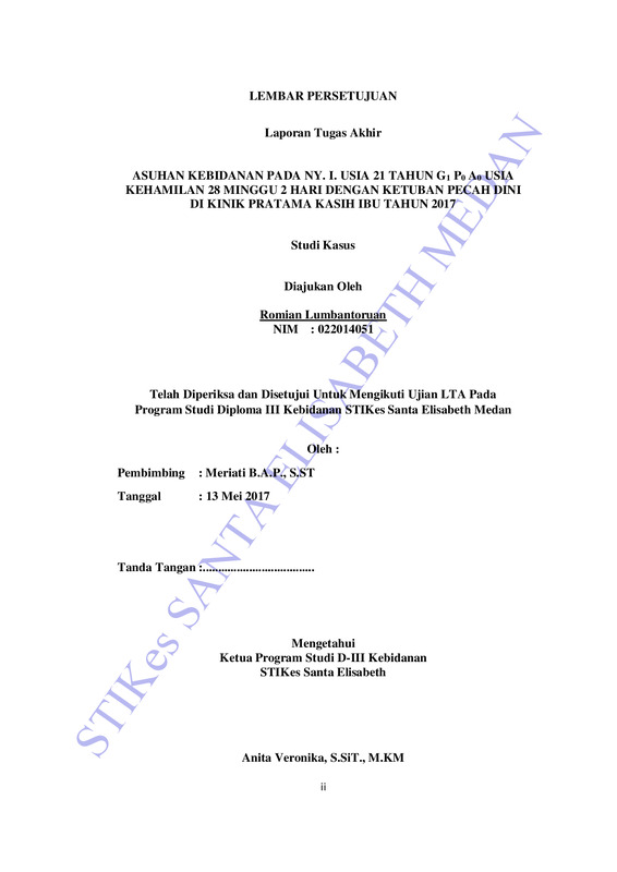 Asuhan Kebidanan Pada Ny. I Usia 21 Tahun G1 P0 A0 Usia Kehamilan 28 Minggu 2 Hari Dengan Ketuban Pecah Dini di Klinik Pratama Kasih Ibu Tahun 2017