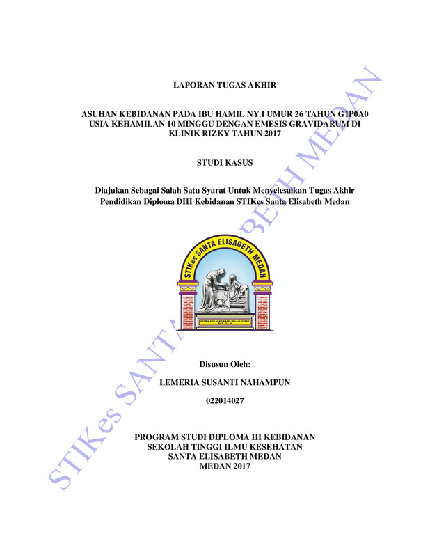 Asuhan Kebidanan pada ibu hamil Ny. I umur 26 tahun G1P0A0 usia kehamilan 10 minggu dengan Emesis Gravidarum di Klinik Rizky tahun 2017
