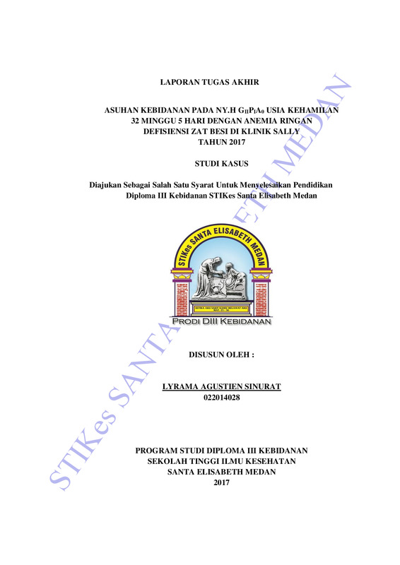 Asuhan kebidanan pada Ny.H G1IPIA0 Usia Kehamilan 32 minggu 5 hari dengan Anemia Ringan Defisiensi Zat Besi di Klinik Sally Tahun 2017