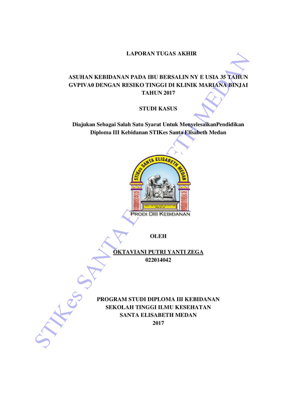 Asuhan Kebidanan pada Ibu Bersalin Ny E Usia 35 Tahun GVPIVA0 dengan Resiko Tinggi di Klinik Mariana Binjai Tahun 2017