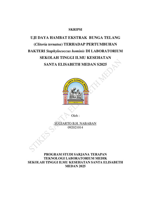 Uji Daya Hambat Ekstrak Bunga Telang (Clitoria ternatea) Terhadap Pertumbuhan Bakteri Staphylococcus hominis di Laboratorium Mikrobiologi Sekolah Tinggi Ilmu Kesehatan Santa Elisabteh Medan 2025